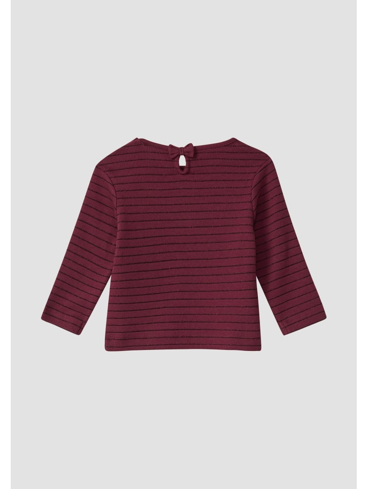 Полосатая рубашка с длинными рукавами из мягкой рубчатой ткани с практичными боковыми застежками-кнопками и милым декоративным бантом. Мерцающие полоски добавляют особый шарм. Удобный классический крой и круглый вырез горловины делают эту рубашку идеальным повседневным спутником.