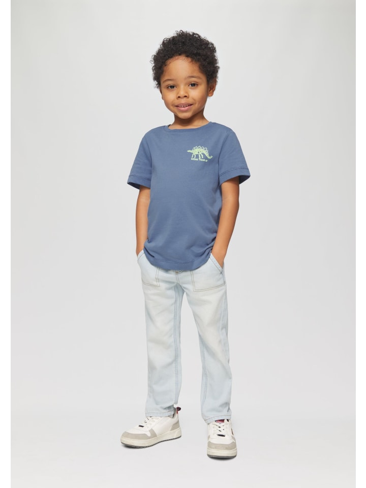 Повседневная футболка для активных детей! Классический крой из мягкого хлопкового трикотажа обеспечивает максимальный комфорт. Благодаря стильному принту на груди и круглому вырезу, она станет идеальным спутником для школы и отдыха. Сочетайте ее с джинсами или шортами для создания непринужденного повседневного образа.
