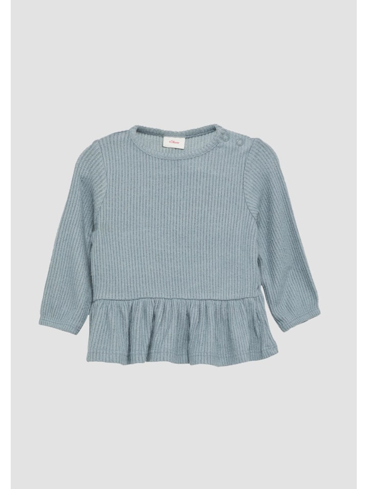 Рубашка с длинными рукавами для малышей, прямого кроя, из смесовой вискозы. Ребристая текстура и окантовка горловины обеспечивают комфорт и стиль. Расклешенный подол идеально подходит для осенних дней или уютных часов дома. Универсальная и легко комбинируемая модель - незаменимая базовая вещь для гардероба вашего малыша.