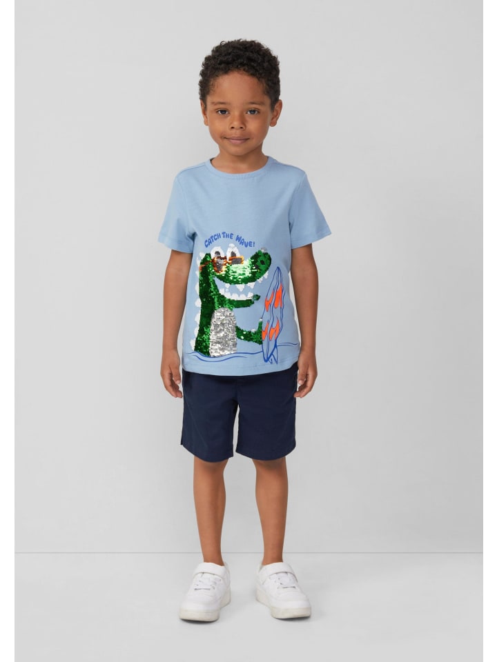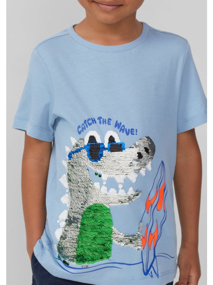 Откройте для себя нашу игривую футболку из джерси с волшебными двусторонними пайетками! Удобный классический крой из мягкого хлопка позволит вашему ребенку свободно играть весь день. Круглый вырез с ребристым поясом создаст непринужденный образ. Сочетайте с джинсами для создания стильного повседневного образа или с юбкой для особых случаев.