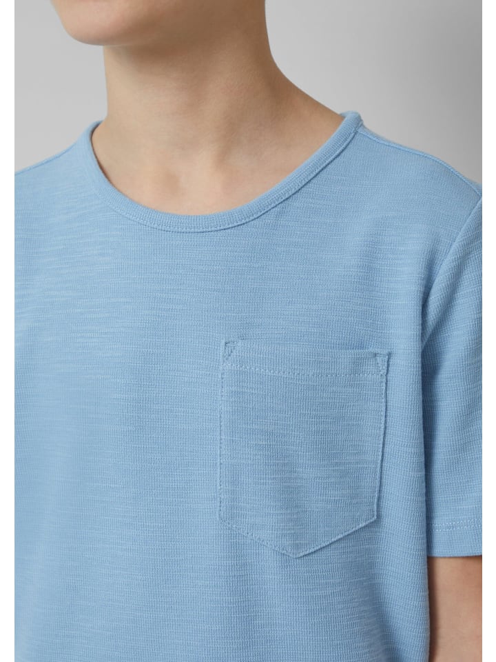 Футболка из хлопковой смеси для активных детей! Классический крой и короткие рукава обеспечивают свободу движений во время игры. Нагрудный карман удобен для маленьких сокровищ. Круглый вырез горловины и декоративная отделка создают непринужденный образ. Идеально подходит для летних дней и прогулок!