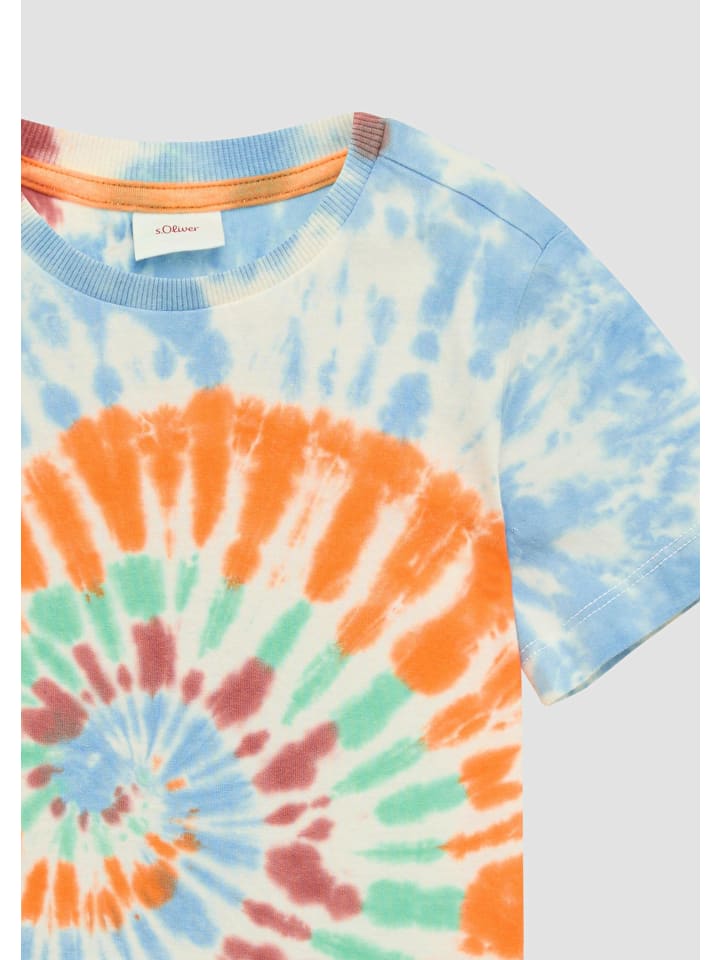 Эта футболка из джерси с начесом украшена эффектом тай-дай. Круглый вырез горловины с ребристой отделкой и классический крой обеспечивают комфорт. Футболка станет отличным дополнением к любому образу, будь то школа или отдых. Ее можно комбинировать с самыми разными вещами.