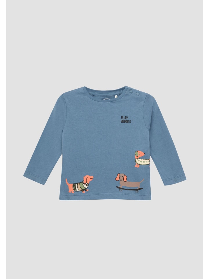 Откройте для себя нашу универсальную футболку с длинными рукавами для малышей! Изготовленная из чистого хлопка с начесом, она обеспечивает максимальный комфорт. Окантовка горловины и стильный принт спереди делают ее стильным универсальным предметом гардероба. Идеально подходит для прохладных дней или в качестве базового слоя - вашему малышу понравится!