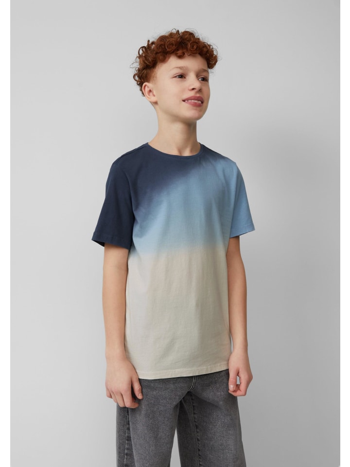 Эта футболка из джерси с легким градиентом цвета создает свежий летний образ. Удобный классический крой из мягкого хлопка обеспечивает свободу движений во время игры. Короткие рукава и круглый вырез горловины сделают ее идеальным спутником в теплые дни. Сочетайте ее с шортами или юбкой для создания повседневного образа.