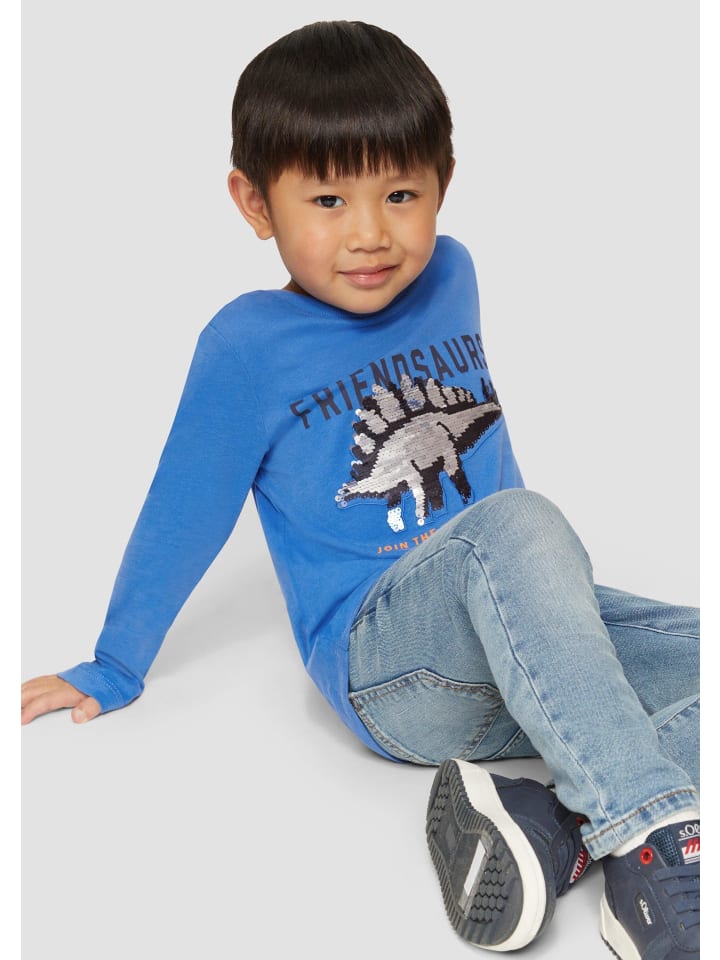 Откройте для себя эту очаровательную рубашку с длинными рукавами и двусторонними пайетками для ваших маленьких искателей приключений! Изготовленная из 100% хлопка, она обеспечивает максимальный комфорт. Классический крой и ребристый вырез горловины обеспечивают удобную посадку. Принт спереди с двусторонними пайетками приглашает к игре и делает рубашку настоящей приманкой для любого случая.