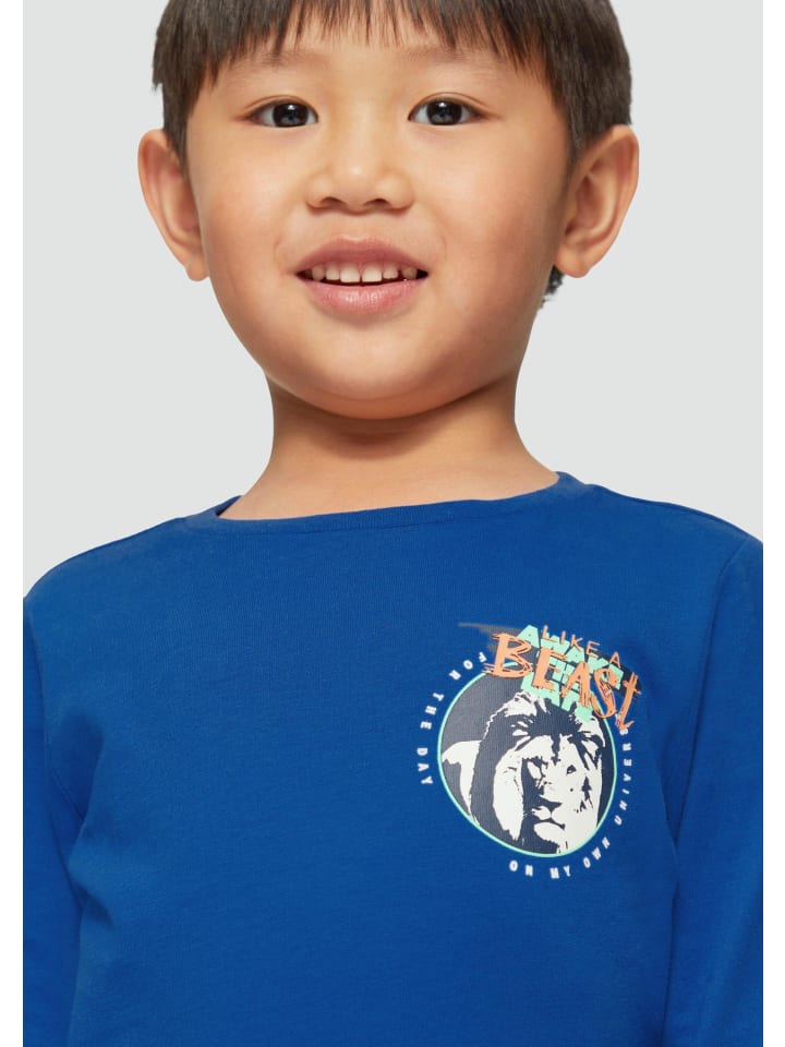 Найдите идеальную футболку с длинным рукавом для вашего ребенка! Эта удобная футболка из 100% хлопка - настоящая универсальная вещь. Прорезиненные принты и окантовка горловины создают стильный образ. Свободный крой и трикотаж с начесом делают ее идеальным спутником для школы и отдыха.