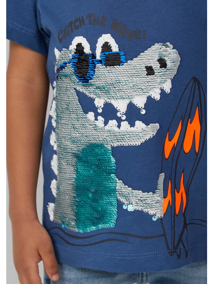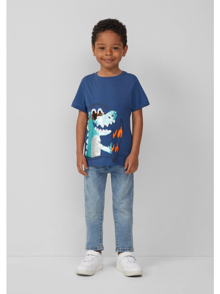 Откройте для себя нашу игривую футболку из джерси с волшебными двусторонними пайетками! Удобный классический крой из мягкого хлопка позволит вашему ребенку свободно играть весь день. Круглый вырез с ребристым поясом создаст непринужденный образ. Сочетайте с джинсами для создания стильного повседневного образа или с юбкой для особых случаев.
