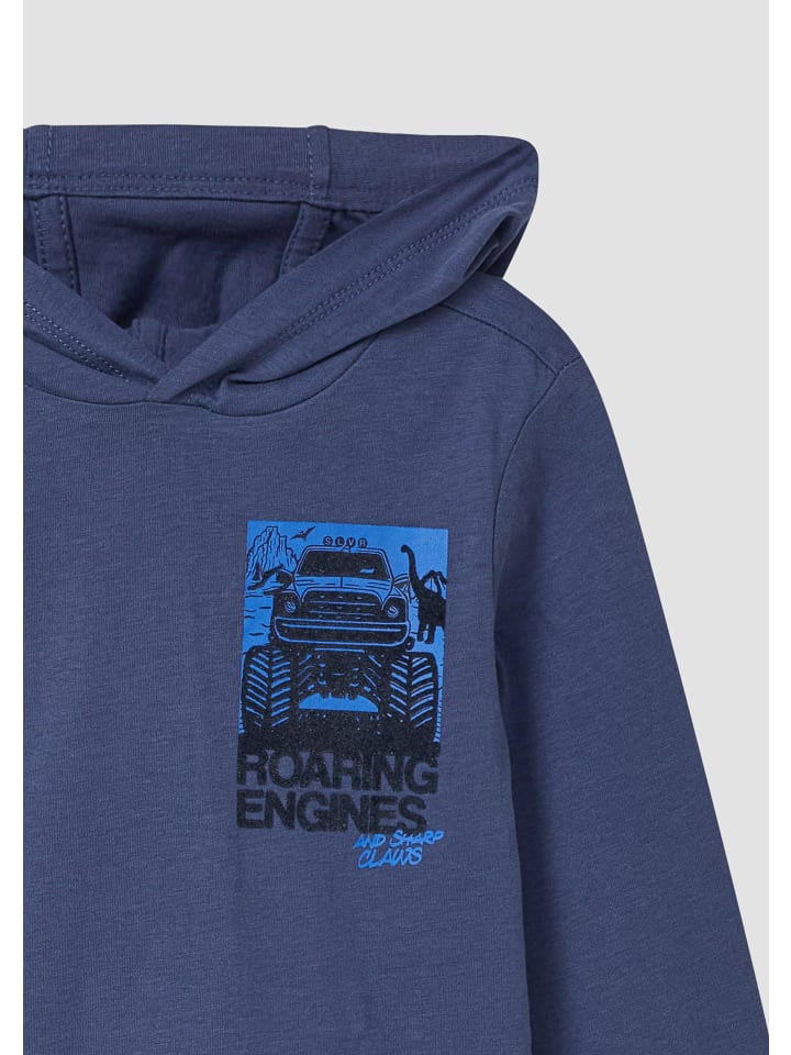 Эта блузка с длинными рукавами, капюшоном и флокированным принтом впечатляет своим свободным классическим кроем. Мягкий трикотаж обеспечивает комфорт для активных детей. Круглый вырез горловины и принт спереди делают ее стильным спутником для школы и отдыха.