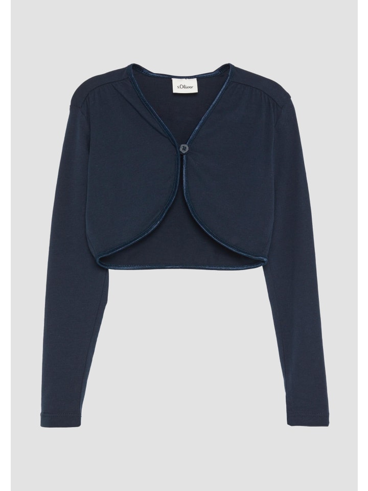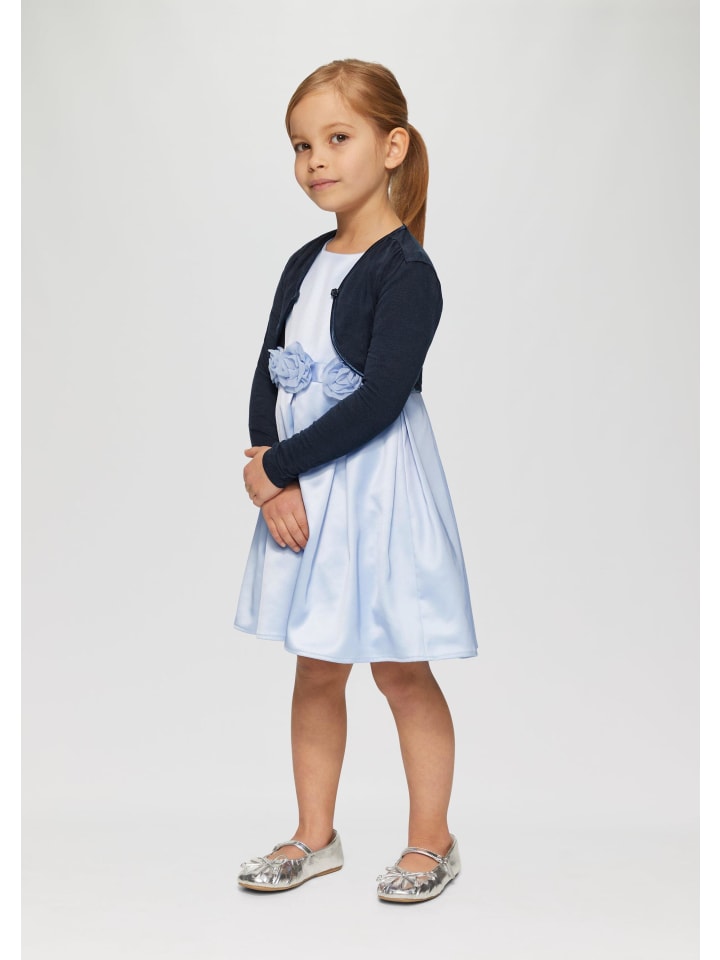 Праздничное болеро с длинными рукавами из мягкого хлопкового трикотажа для маленьких принцесс. Классический крой и атласная отделка придают верху элегантность. Красивая пуговица в виде цветка сделает любой наряд по-настоящему притягивающим взгляд. Идеально подходит для особых случаев или как стильный повседневный аксессуар для детей от 2 до 9 лет.