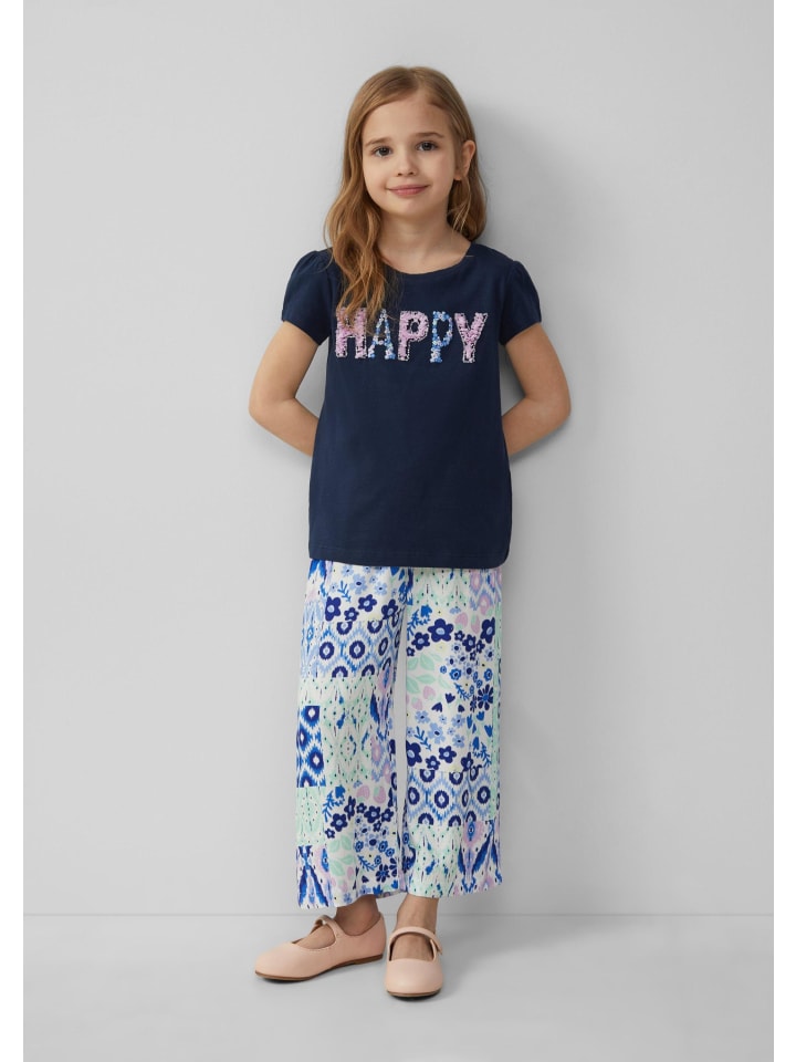 Эта футболка А-силуэта с короткими рукавами из джерси украшена веселым принтом спереди и такими милыми деталями, как рюши, аппликации и декоративные бусины. Начес гарантирует комфорт. Универсальный фаворит на каждый день и для особых случаев.