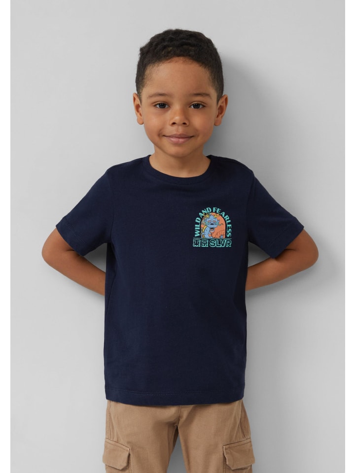 Удобная футболка прямого кроя из мягкого трикотажа для активных детей. Круглый вырез горловины с ребристым краем и веселый принт спереди делают ее идеальным повседневным спутником. Эта хлопковая футболка универсальна и легко надевается детьми как для игр, так и для прогулок.