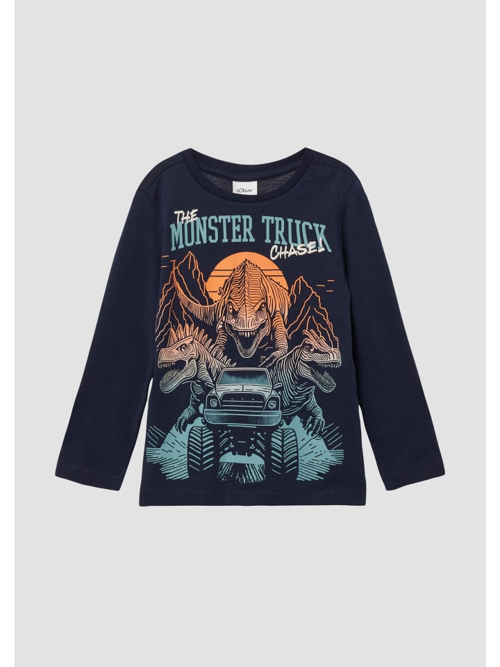 Эта рубашка с длинными рукавами, крупным принтом динозавров и вышитыми деталями порадует маленьких искателей приключений. Мягкий трикотаж обеспечивает комфорт во время активных дней. Классический крой и круглый вырез горловины с ребристой отделкой делают ее универсальным фаворитом для школы и отдыха.