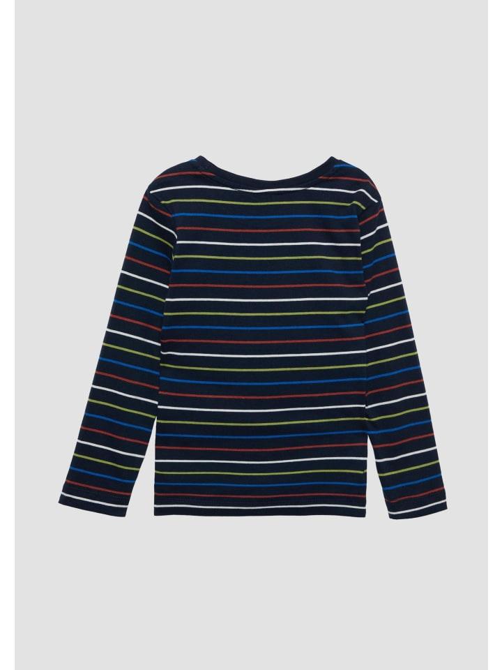 Полосатая футболка с длинными рукавами из чистого хлопка для активных детей от 2 до 9 лет. Мягкий трикотаж и окантовка горловины обеспечивают комфорт во время игр и бега. Идеально подходит для прохладных дней или в качестве базового слоя зимой. Универсальна и легко сочетается с джинсами или юбками.