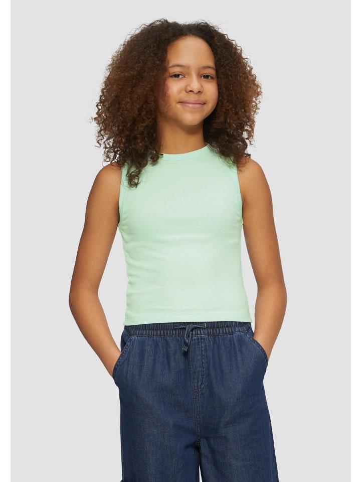 Этот укороченный топ облегающего кроя из эластичной вискозной смесовой ткани - идеальный летний компаньон для модниц-подростков. Благодаря широким бретелям и окантовочному вырезу его можно носить по-разному - как для пляжа, так и для повседневных городских образов. Ребристая текстура придает рубашке без рукавов модный вид для солнечных дней.