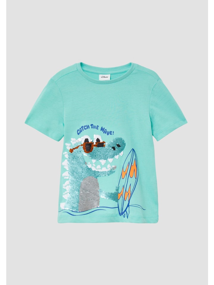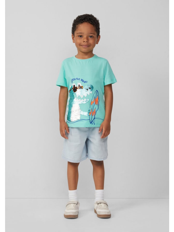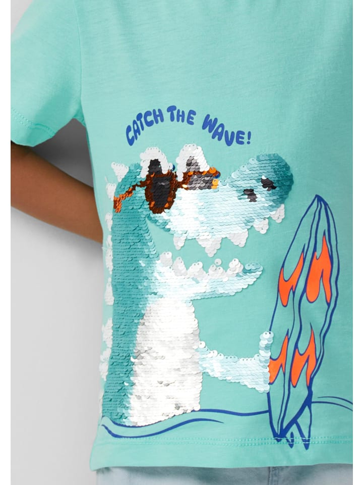 Откройте для себя нашу игривую футболку из джерси с волшебными двусторонними пайетками! Удобный классический крой из мягкого хлопка позволит вашему ребенку свободно играть весь день. Круглый вырез с ребристым поясом создаст непринужденный образ. Сочетайте с джинсами для создания стильного повседневного образа или с юбкой для особых случаев.