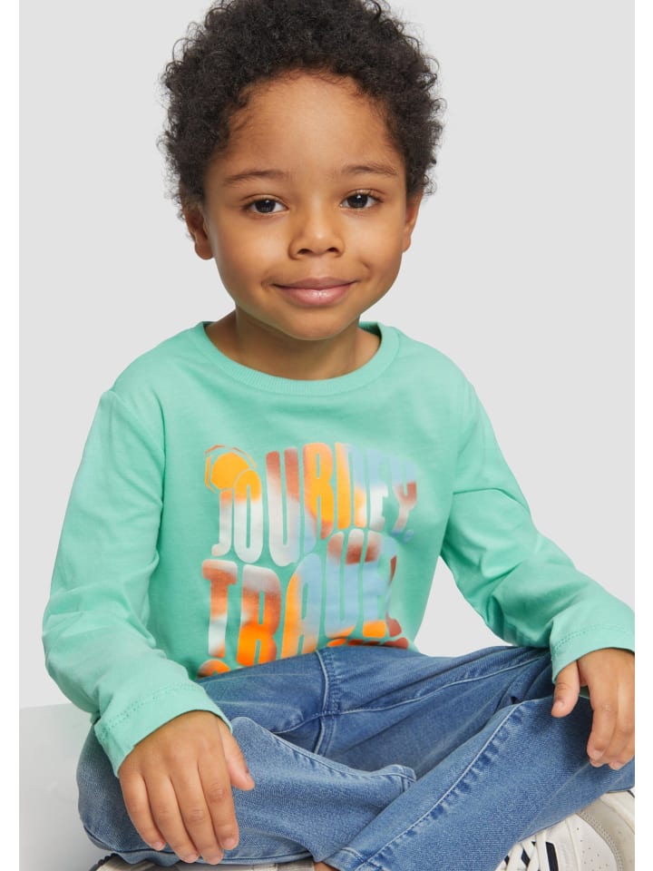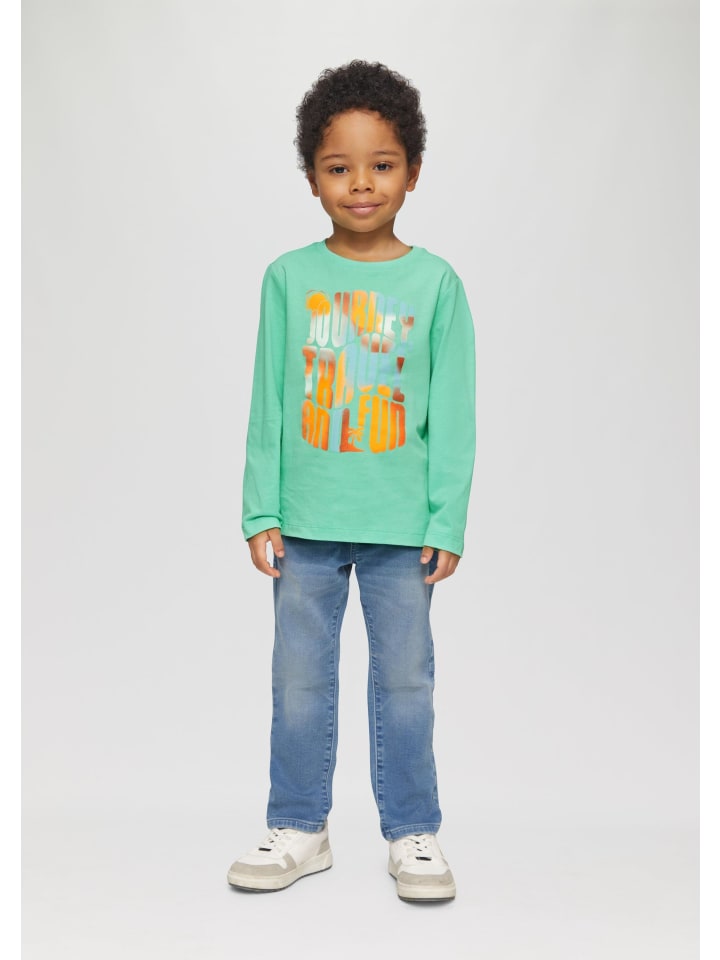 Эта уютная трикотажная рубашка с длинными рукавами, круглым вырезом и принтом спереди впечатляет своей начесной тканью, которая обеспечивает комфортное тепло. Свободный крой обеспечивает оптимальную свободу движений для активных детей. Универсальный спутник для школы и отдыха.