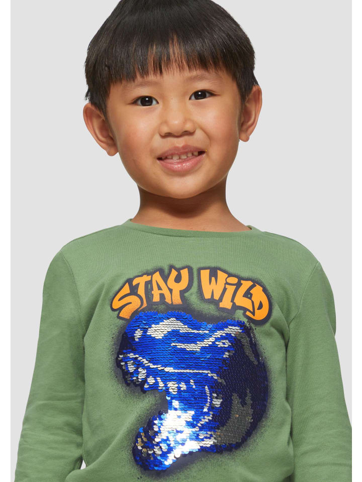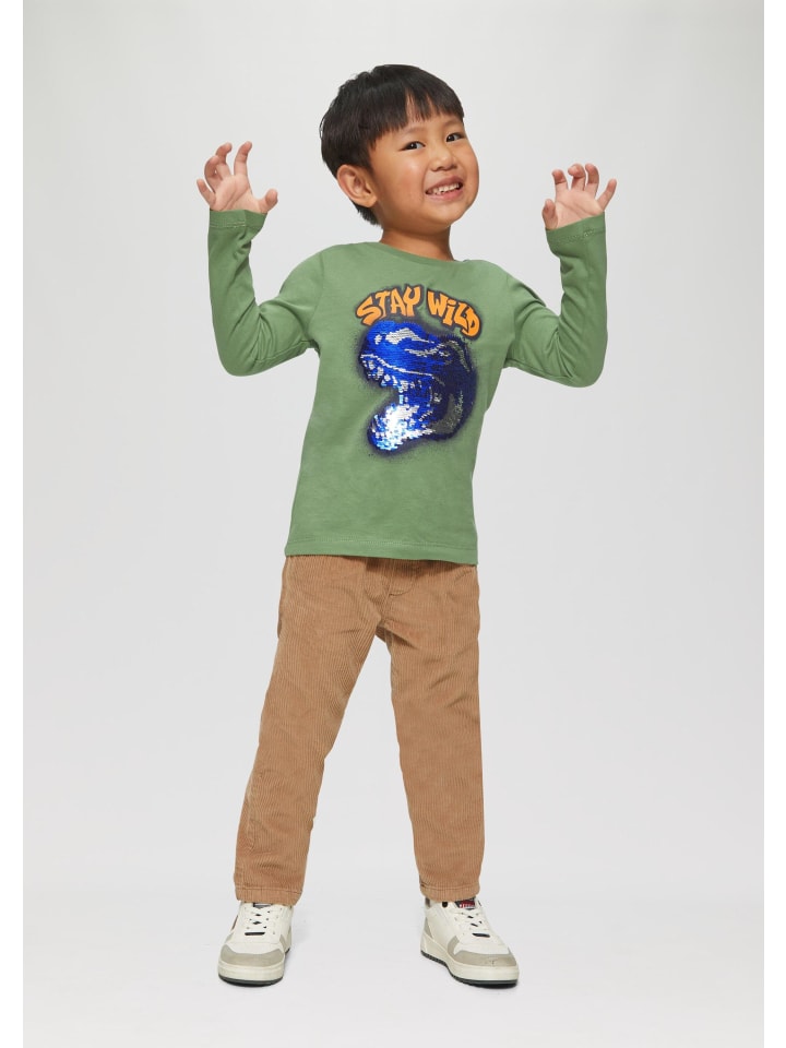 Откройте для себя очаровательный топ с длинными рукавами и двусторонними пайетками для вашего ребенка! Эта футболка с длинными рукавами, изготовленная из 100% хлопка, обеспечивает максимальный комфорт. Окантовка горловины и классический крой создают непринужденный образ. Идеально подходит для креативных сочетаний в любое время года!