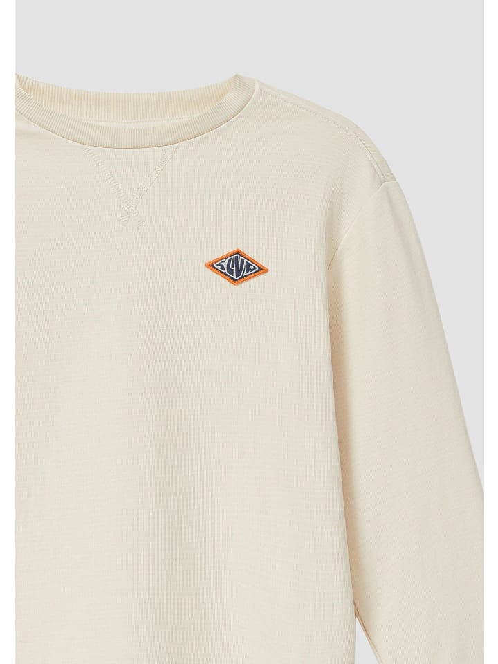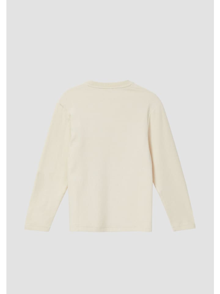 Стильная рубашка с длинными рукавами из текстурированного плотного трикотажа с эффектной нашивкой. Ребристый круглый вырез горловины и спущенные плечи создают непринужденный образ. Украшения придают особый шарм этой рубашке прямого кроя - идеально подходит для школы и отдыха.