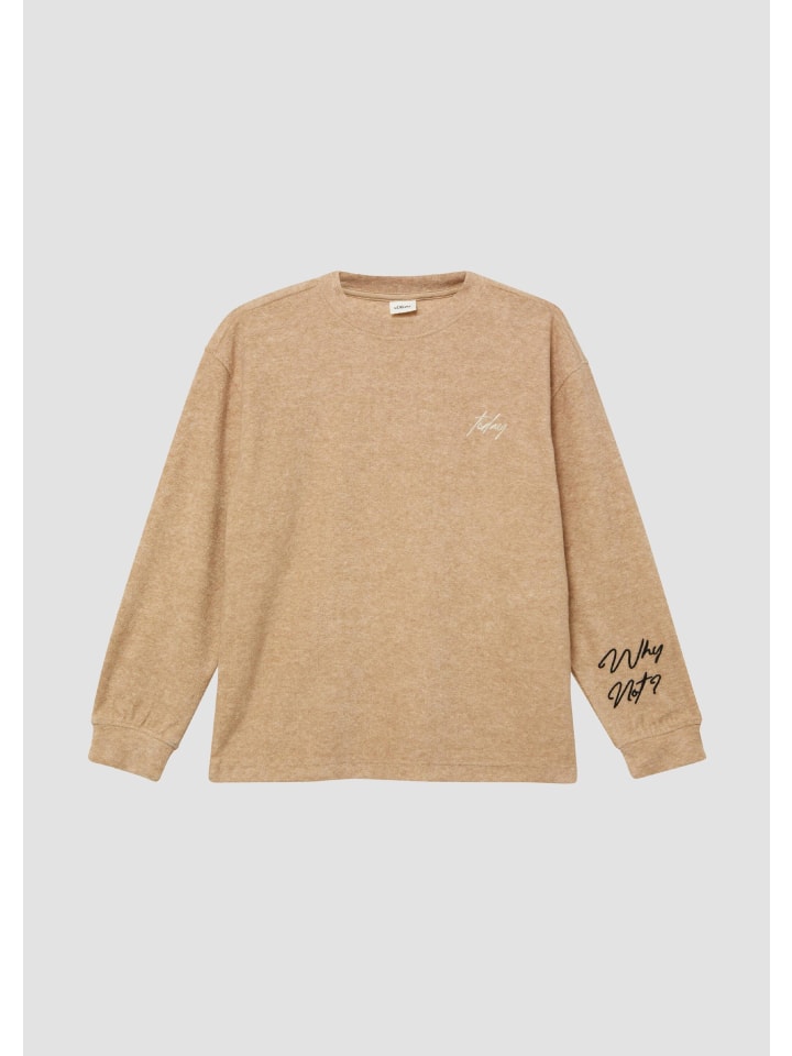 Этот мягкий махровый топ с длинными рукавами свободного кроя украшен непринужденной вышивкой и круглым вырезом. Спущенная линия плеча и широкие рукава с манжетами создают стильный образ. Идеально подходит для расслабленных школьных дней и отдыха - просто наденьте его поверх базовой вещи, и ваш образ готов!