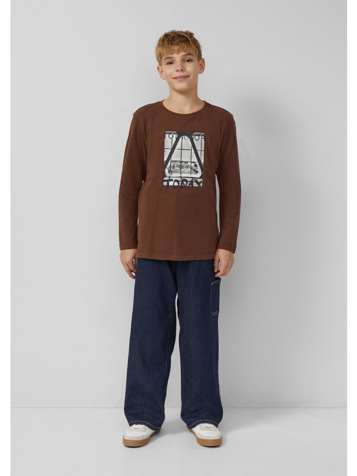 Удобная рубашка с длинными рукавами из мягкого трикотажа с интересным принтом спереди. Классический крой и круглый вырез горловины с отделкой в рубчик создают непринужденный образ. Приятная для кожи хлопковая ткань делает эту рубашку идеальным спутником для школы и отдыха.