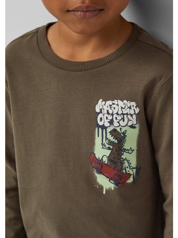 Повседневный топ с длинными рукавами и эффектным фактурным принтом спереди. Мягкий хлопковый трикотаж и классический круглый вырез горловины с ребристой отделкой обеспечивают исключительный комфорт. Классический крой обеспечивает оптимальную свободу движений во время любых дневных приключений.