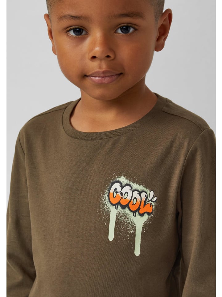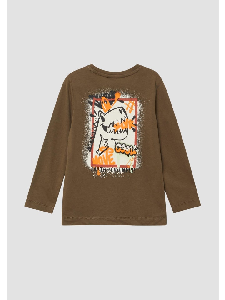 Повседневная хлопковая рубашка с длинными рукавами, прямого кроя, с интересным принтом спереди и сзади. Мягкий трикотаж и удобный круглый вырез горловины с ребристым краем обеспечивают высокий уровень комфорта. Стильная базовая модель для школы и отдыха.