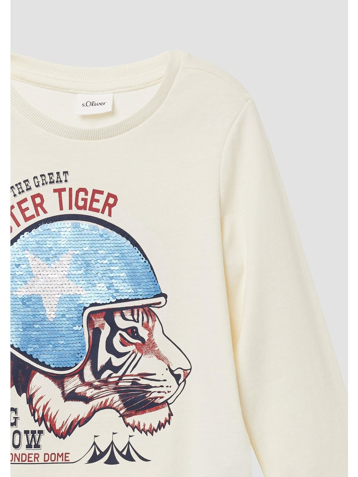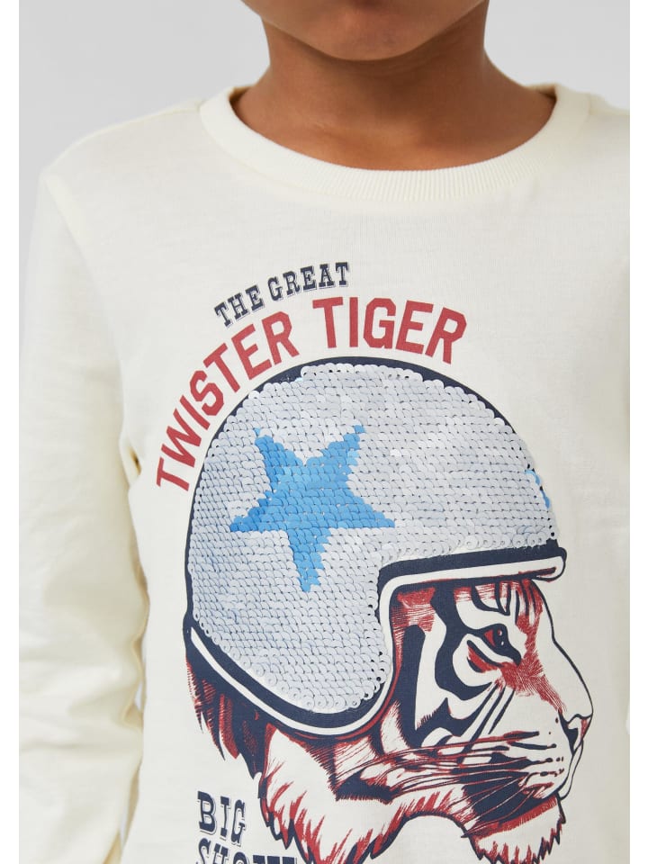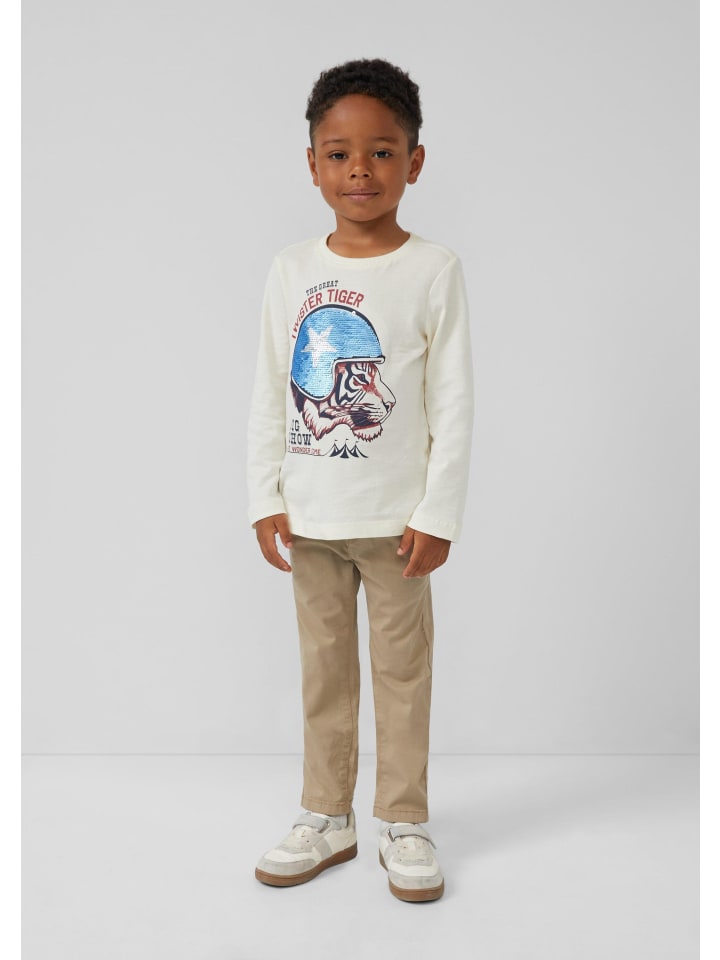 Игривая рубашка с длинными рукавами для маленьких искателей приключений! Мягкий хлопковый трикотаж обеспечивает комфорт, а принт спереди с двусторонними пайетками обязательно понравится. Идеально подходит для повседневной носки или особых случаев. Сочетайте ее по-разному и наслаждайтесь легким уходом за этой рубашкой прямого кроя.