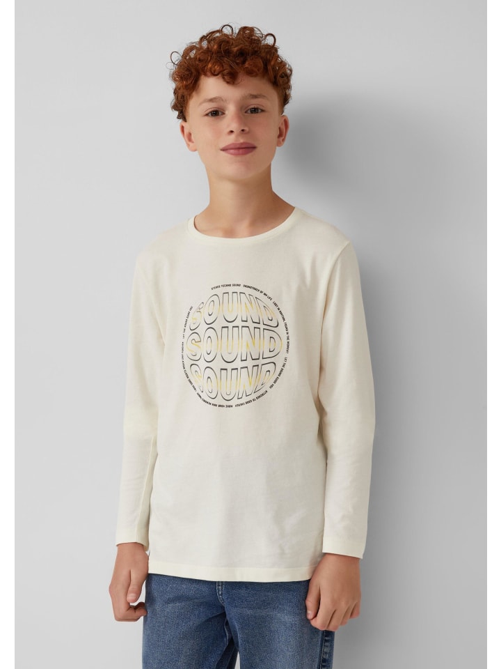 Эта хлопковая футболка с длинными рукавами стандартного кроя украшена эффектным принтом спереди. Мягкий трикотаж обеспечивает комфорт на каждый день. Круглый вырез с ребристой отделкой добавляет особый шарм. Идеально подходит для школы, отдыха и уютных домашних дней.