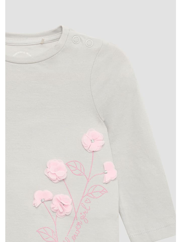 Откройте для себя эту очаровательную рубашку с длинными рукавами для вашего малыша! Изготовлена из мягкого хлопка и украшена игривой цветочной аппликацией с блестками. Круглый вырез и практичные кнопки позволяют легко надевать рубашку. Удобная повседневная вещь, которая вызовет улыбку на лице каждого.