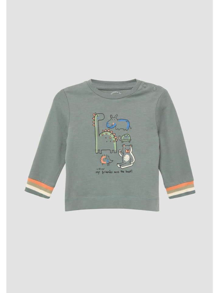 Веселая футболка с длинными рукавами для активных малышей! Трикотаж с начесом из чистого хлопка обеспечивает комфорт и тепло. Окантовка горловины и разноцветные манжеты придают этой футболке прямого кроя особый вид. Игривый принт спереди превратит каждый день в приключение для вашего малыша.