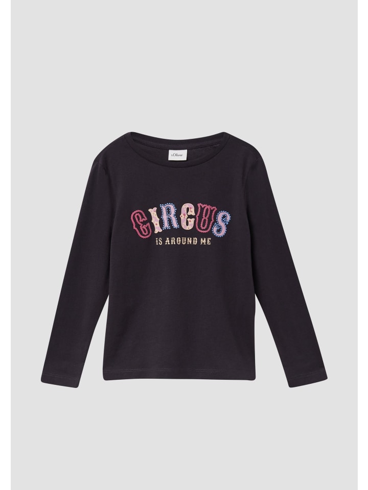 Эта футболка из чесаного трикотажа с длинными рукавами свободного кроя с прорезиненным принтом спереди и блестящими деталями. Круглый вырез горловины с ребристой отделкой обеспечивает комфортную носку. Изготовленная из мягкого хлопка, она станет идеальным спутником вашего ребенка в школе и на отдыхе.