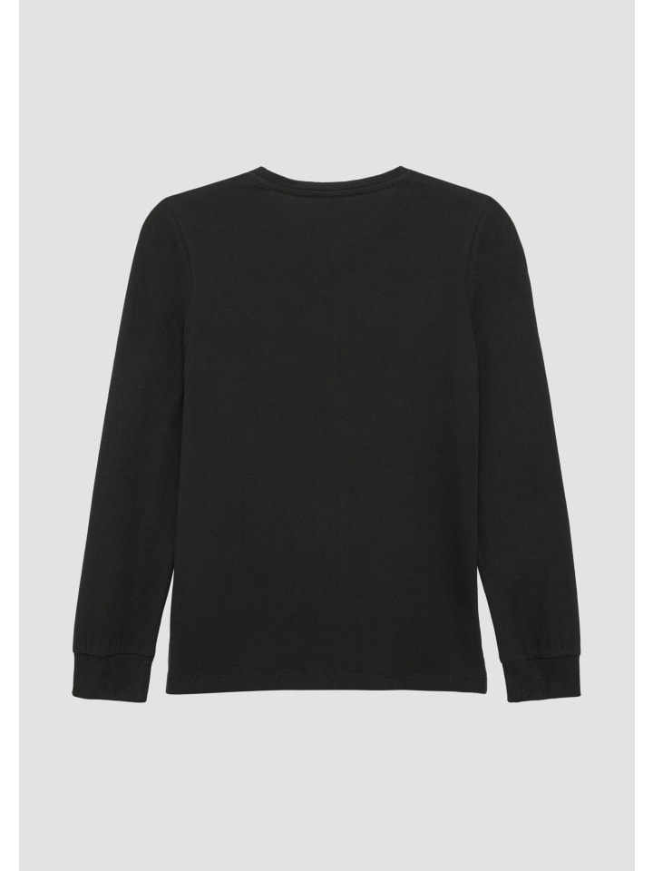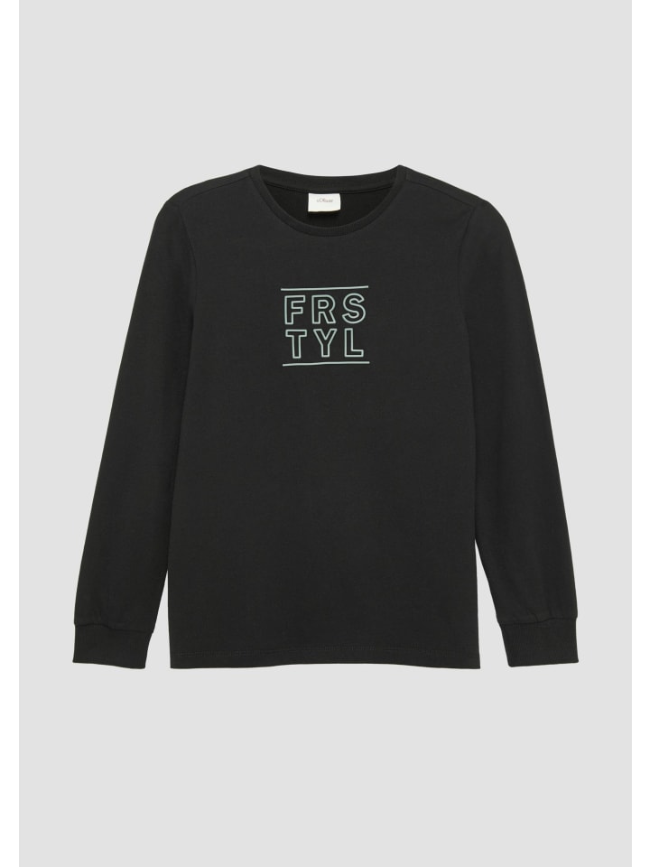 Откройте для себя эту стильную рубашку с длинными рукавами для активных подростков! Прорезиненный принт спереди и окантовка горловины притягивают взгляды. Трикотажная ткань с начесом из 100% хлопка обеспечивает комфорт. Идеальный вариант для школы или отдыха - универсальная базовая модель прямого кроя для модной молодежи.