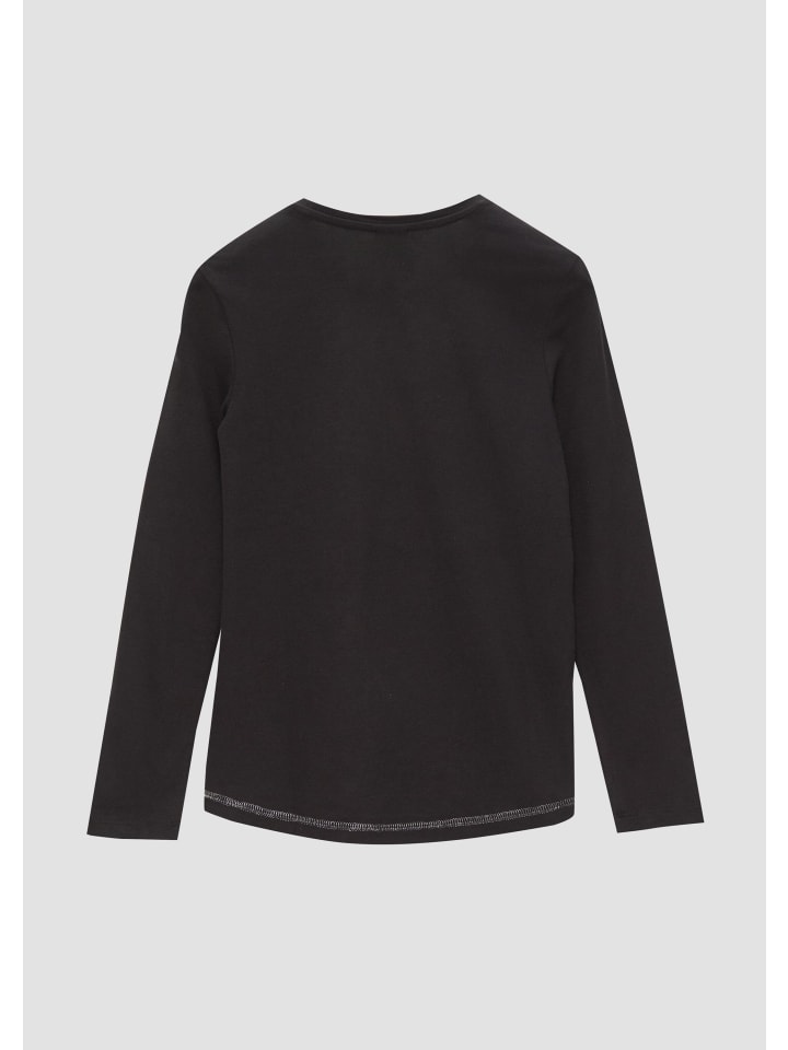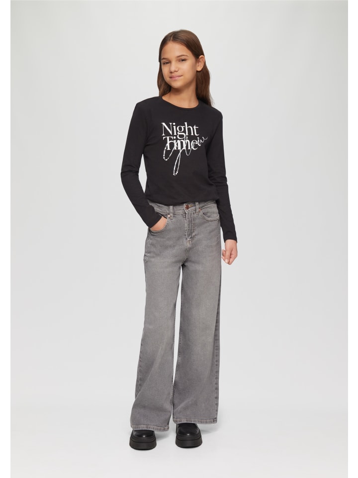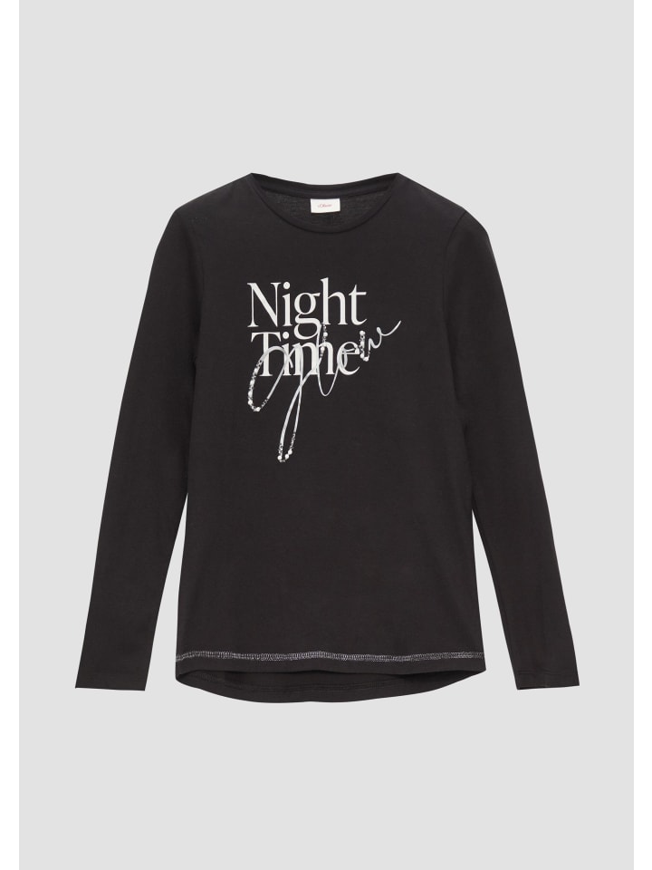 Стильная рубашка с длинными рукавами для модных подростков! Мягкий хлопковый трикотаж с интересным принтом в виде букв и сверкающими стразами придаст вашему ребенку непринужденный вид. Окантовка горловины и закругленный подол добавят модных акцентов. Идеально подходит для школы или отдыха - универсальная и удобная благодаря свободному крою.