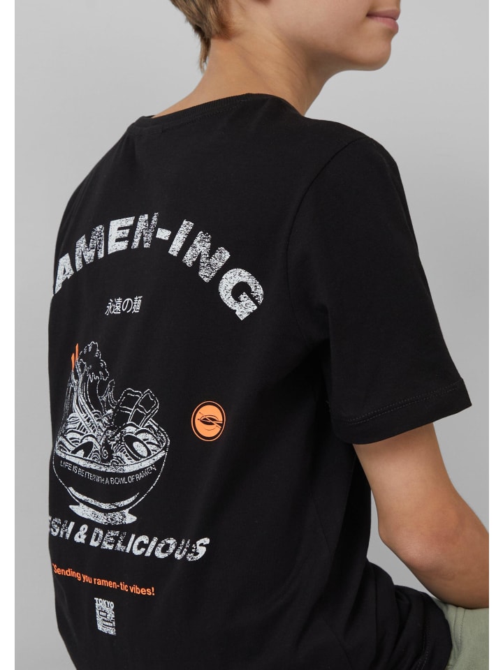 Эта хлопковая футболка с эффектным принтом на спине. Круглый вырез горловины с ребристым краем обеспечивает комфорт. Классический крой обеспечивает свободу движений для активных детей. Универсальный фаворит для школы и отдыха.