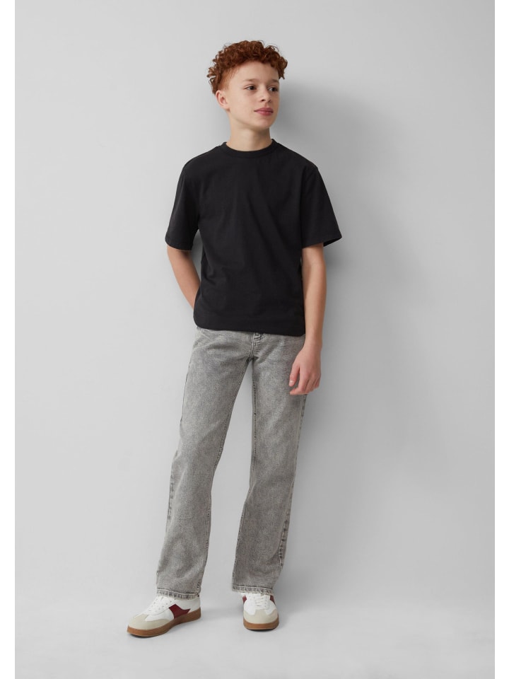 Повседневная футболка прямого кроя из мягкого трикотажа для активных детей. Круглый вырез горловины с ребристым краем и спущенная линия плеча обеспечивают свободу движений. Стильный принт на спине с эффектом потертости делает футболку по-настоящему привлекательной. Идеально подходит для летних дней и активного отдыха. Сочетайте с шортами или джинсами для создания повседневного образа.