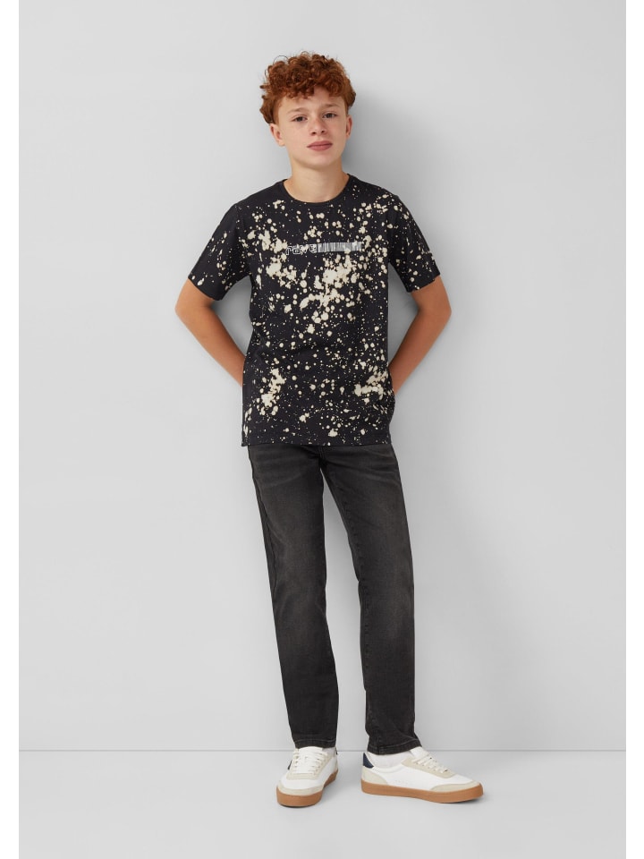 Классная трикотажная футболка с ярким принтом спереди и сзади для вашего ребенка. Хлопок с начесом приятен на ощупь. Благодаря классическому крою и круглому вырезу она удобна для школы и отдыха. Эффект потертости придает футболке повседневный вид.