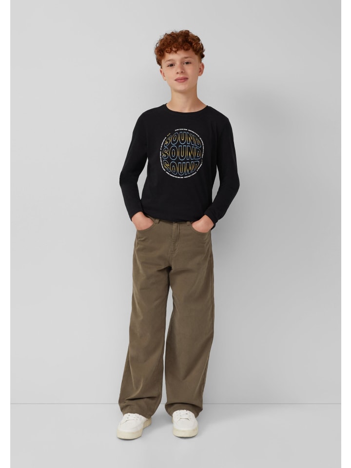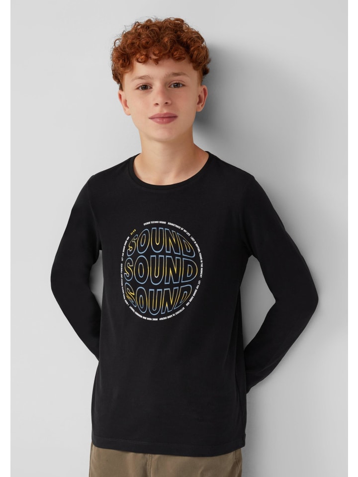 Эта хлопковая футболка с длинными рукавами стандартного кроя украшена эффектным принтом спереди. Мягкий трикотаж обеспечивает комфорт на каждый день. Круглый вырез с ребристой отделкой добавляет особый шарм. Идеально подходит для школы, отдыха и уютных домашних дней.