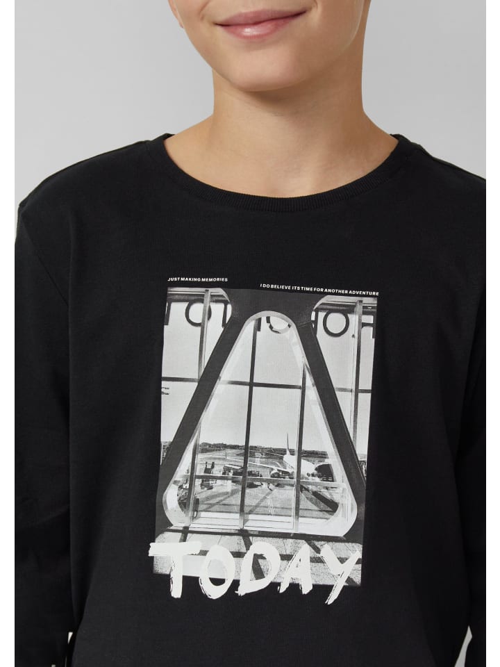 Удобная рубашка с длинными рукавами из мягкого трикотажа с интересным принтом спереди. Классический крой и круглый вырез горловины с отделкой в рубчик создают непринужденный образ. Приятная для кожи хлопковая ткань делает эту рубашку идеальным спутником для школы и отдыха.