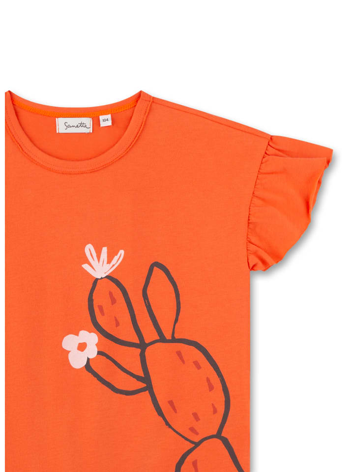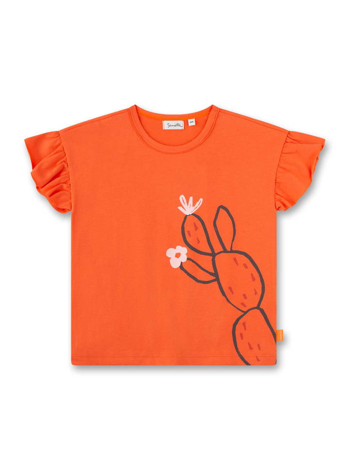 Эффектная футболка для девочек от Sanetta Pure в ярком цвете с мотивом кактуса спереди.