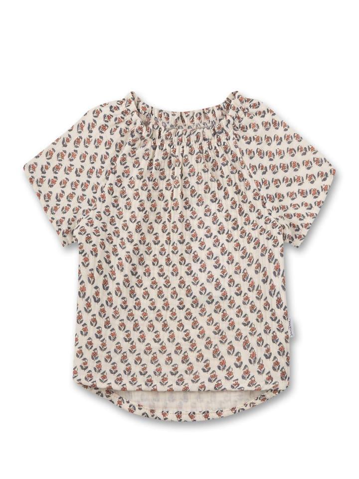 Блузка для девочек с цветочным рисунком от Sanetta Pure с оборкой на горловине, удобного кроя.