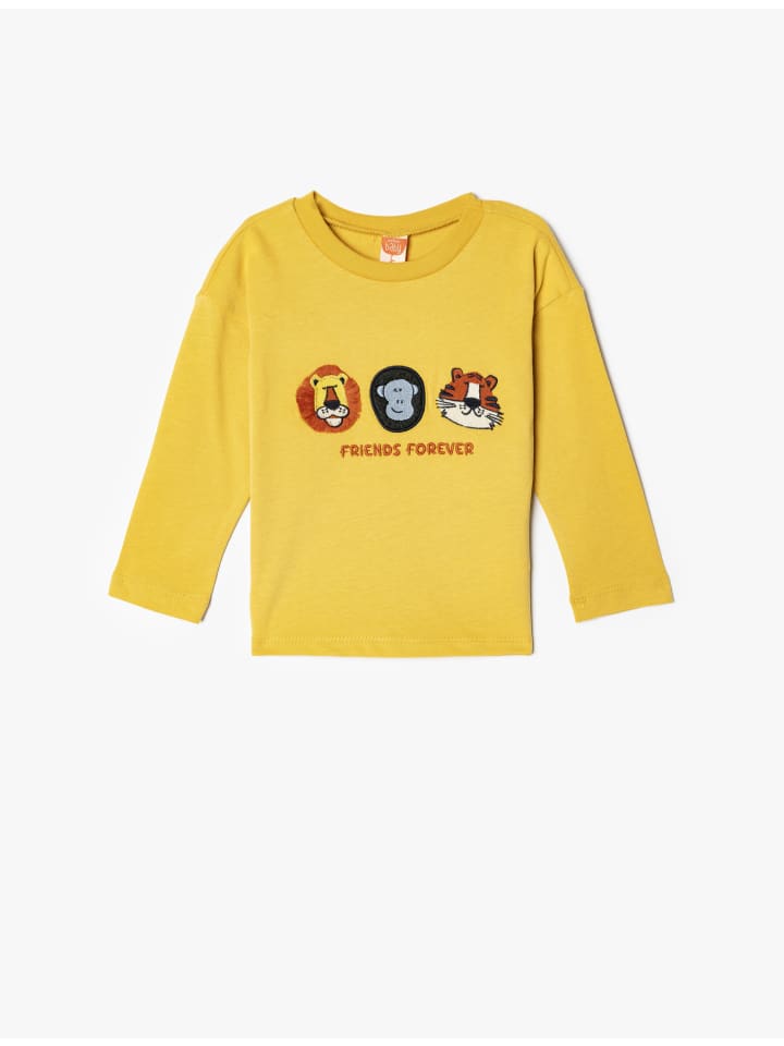 Категория товара: рубашка с длинными рукавами; Вырез горловины: круглый; Тип рукава: втачной; Длина рукава: длинный; Рисунок: анималистичный принт; Детали: надпись «Friends Forever»;