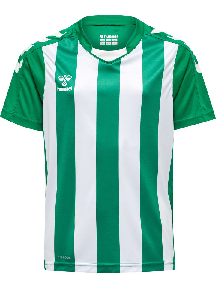 Комфорт гарантирован благодаря детской футболке hmlCORE XK STRIPED JERSEY KIDS S/S благодаря ткани интерлок, которая обеспечивает отличную эластичность и свободу движений. Футболка также обработана по технологии BEECOOL, которая сохраняет ваших юных спортсменов сухими и свежими, обеспечивая отличную воздухопроницаемость. Кант на передней части воротника, шевроны Hummel на плечах и принтованные полосы на торсе создают поистине уникальный дизайн.