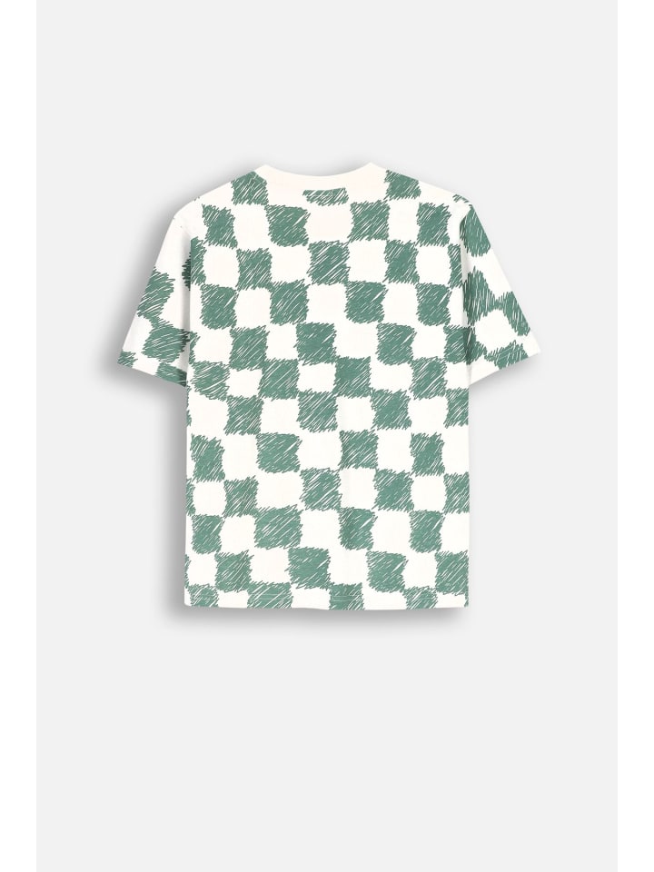 Футболка с коротким рукавом для мальчиков. Шахматный узор. Надпись спереди. Круглый вырез горловины. Футболка с шахматным узором. Эта футболка из коллекции ACADEMY BOY JUNIOR - идеальный выбор для мальчиков, которые хотят выразить свой стиль и увлечения через одежду. Благодаря шахматному узору она одновременно модная и классическая, и сочетается со многими разными нарядами. Изготовленная из высококачественных материалов, эта футболка не только отлично выглядит, но и обеспечивает комфорт в течение всего дня.