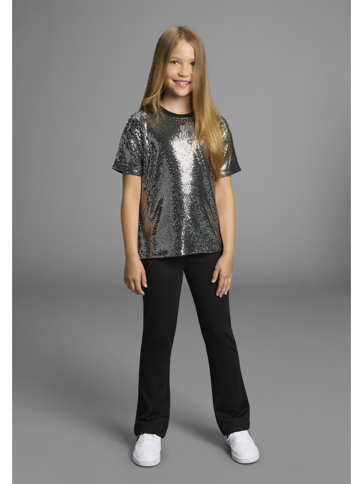 - Блестящая футболка для девочек - праздничный стиль, прямой крой