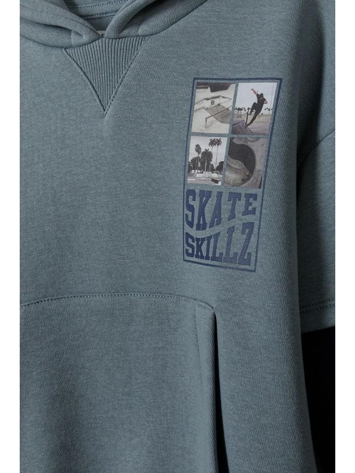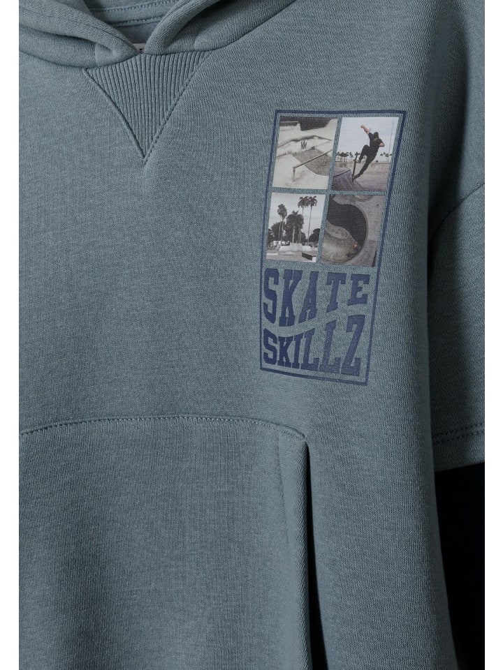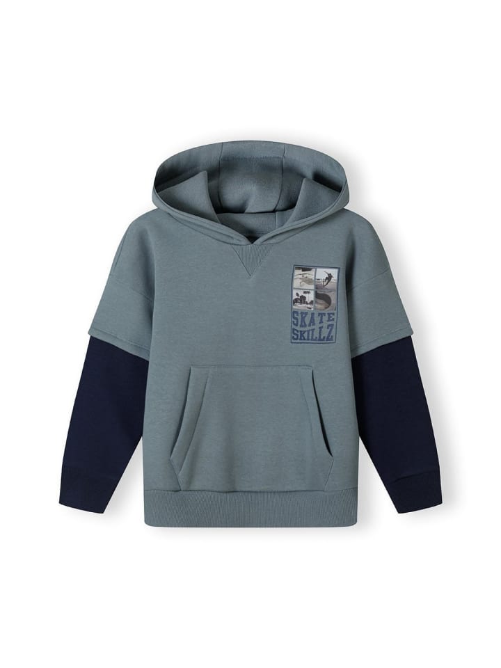 Толстовка с капюшоном из мягкой ткани, с двойными рукавами контрастного цвета. Спереди толстовка украшена принтом и удобным карманом-кенгуру. Идеально подходит для прохладных дней.