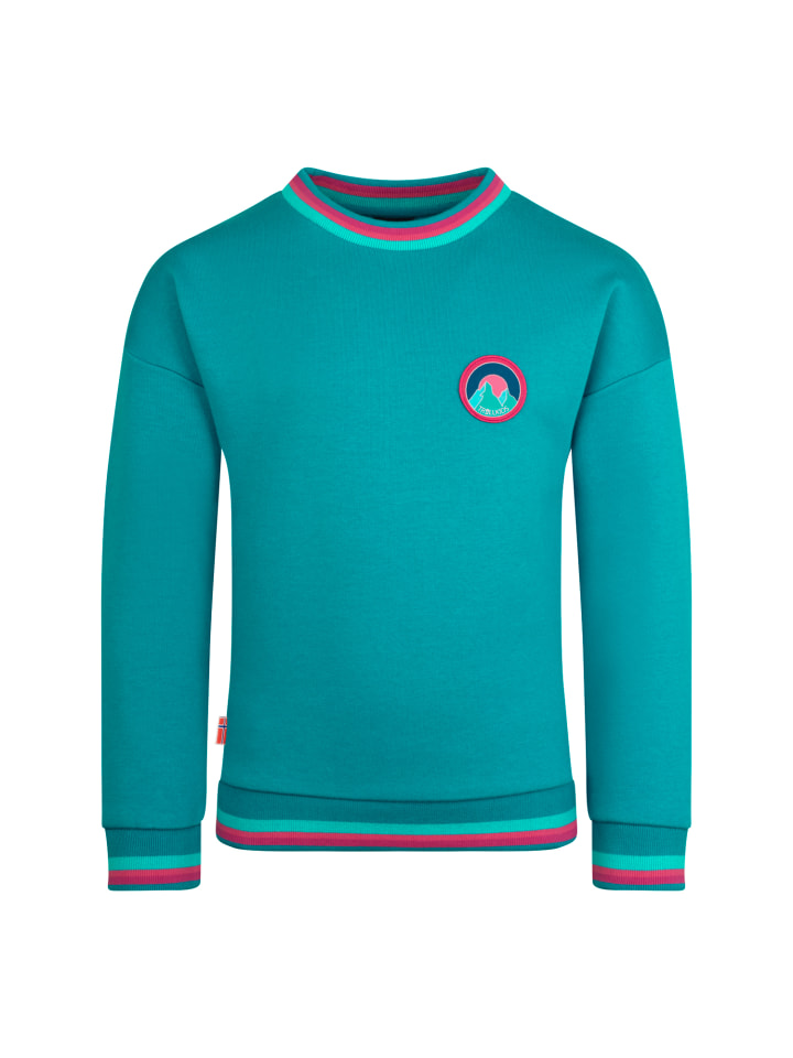 Свитшот GIRLS SENJA изготовлен из органического хлопка и сертифицирован по стандарту GOTS. Этот повседневный свитшот впечатляет не только материалом, но и внешним видом: классический круглый вырез горловины и прямой, свободный крой со спущенными плечами. Трикотажные манжеты в полоску добавляют стильный штрих. На груди расположен небольшой круглый вышитый мотив с изображением гор.