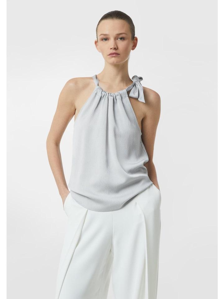 Элегантность и изысканность: этот атласный топ без рукавов с завязкой добавит вашему образу женственности. Высокий вырез и игривые оборки создают гармоничный баланс между изысканностью и очарованием. Текстурированный топ из высококачественной ткани красиво драпируется и подходит для самых разных образов - от офиса до свидания.