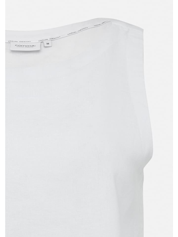 Воздушная и легкая блузка из смесовой льняной ткани для создания универсальных образов: этот топ без рукавов с вырезом-лодочкой сочетает в себе комфорт и элегантность. А-силуэт и разрезы по бокам добавляют женственности. Идеально подходит для повседневных, деловых или отпускных образов - сочетайте ее с льняными брюками для летнего офисного образа или с шортами для непринужденной прогулки по пляжу. Высококачественная вышивка логотипа придает изделию изысканный вид.