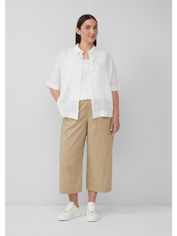 Эта воздушная и легкая льняная блузка свободного кроя будет стильно дополнять ваш образ в течение всего дня. Благодаря коротким рукавам, классическому рубашечному воротнику и практичной планке на пуговицах, она сочетает в себе комфорт и классический дизайн для ваших повседневных образов.