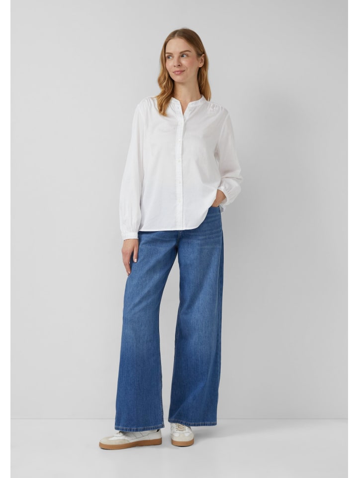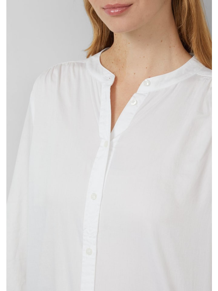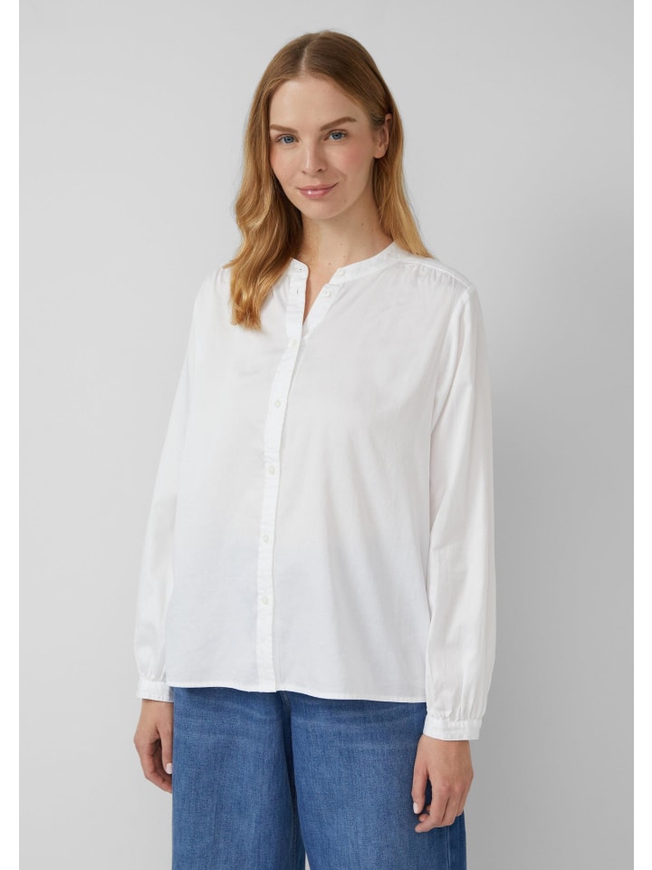 Воздушная, легкая и элегантная модель для повседневной жизни: эта блузка из хлопкового атласа с воротником-стойкой и сборками создает стильный образ. Длинные рукава с манжетами и планкой на пуговицах - идеальный вариант для непринужденных повседневных образов!